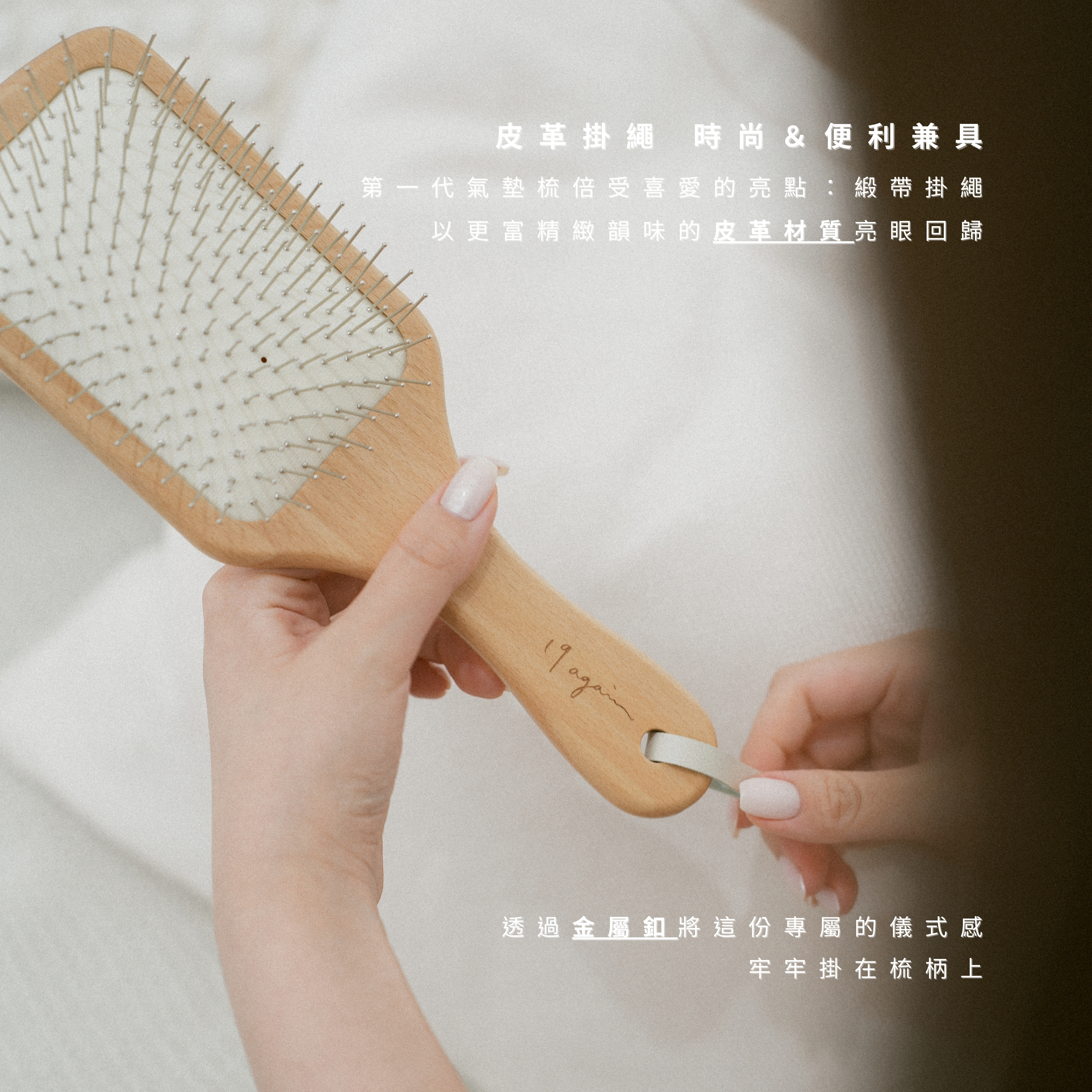 梳柄附上「皮革」掛繩,