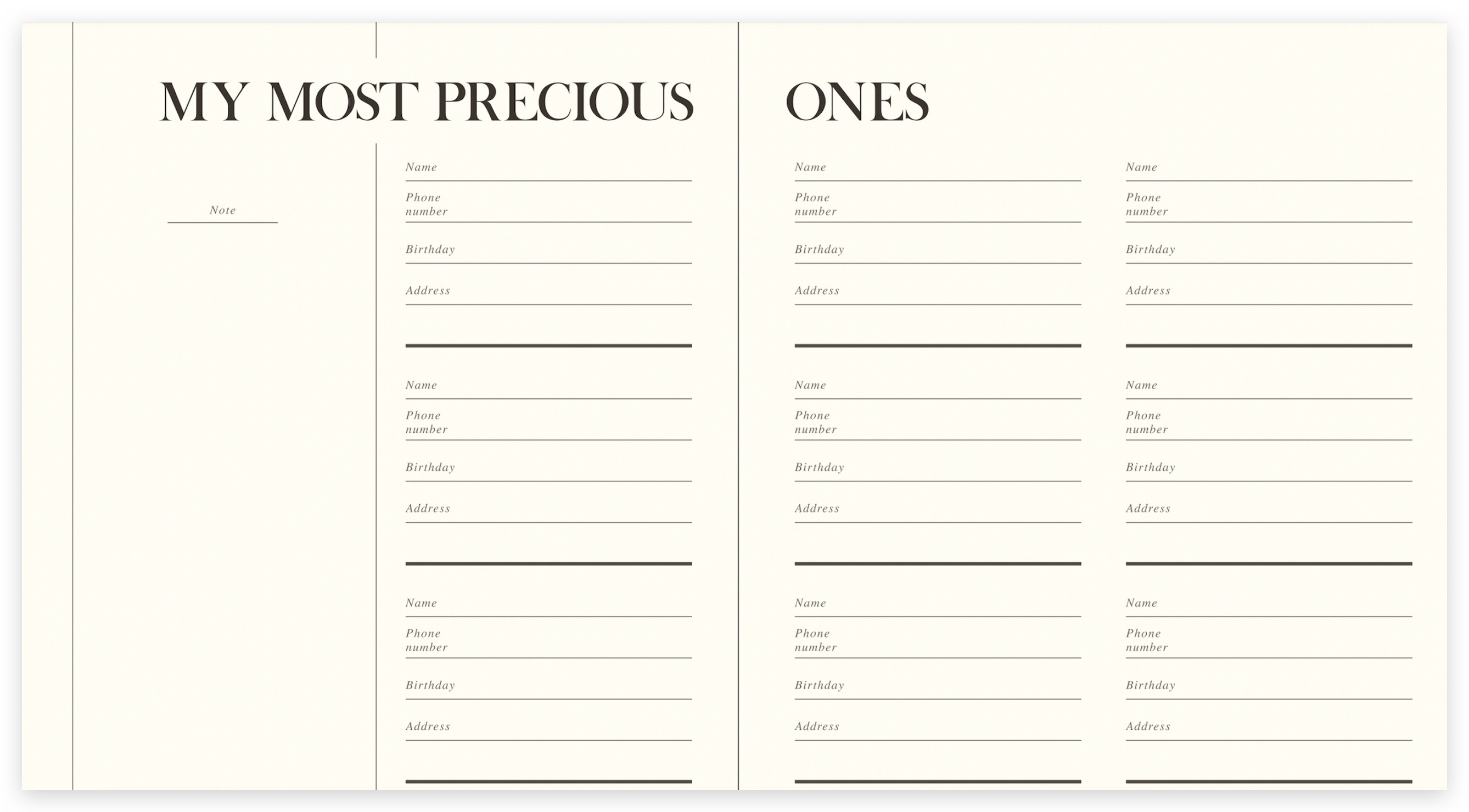 來,把那些人都寫下來吧!地址、電話、生日完整讓你填!