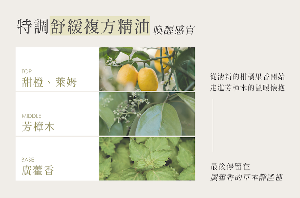 → 透過嗅覺喚醒感官、放鬆身心壓力