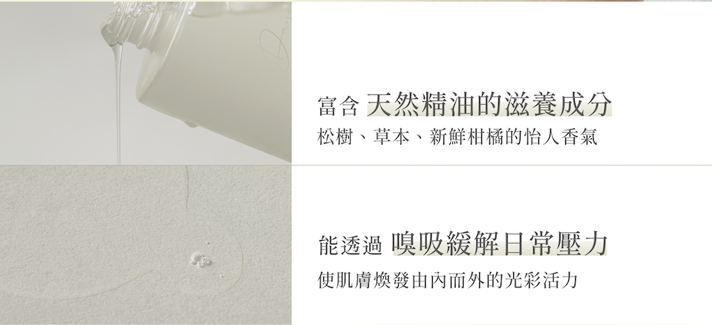 採用天然無添加配方,結合複方精油,質地清爽好吸收,深層滋潤不黏膩