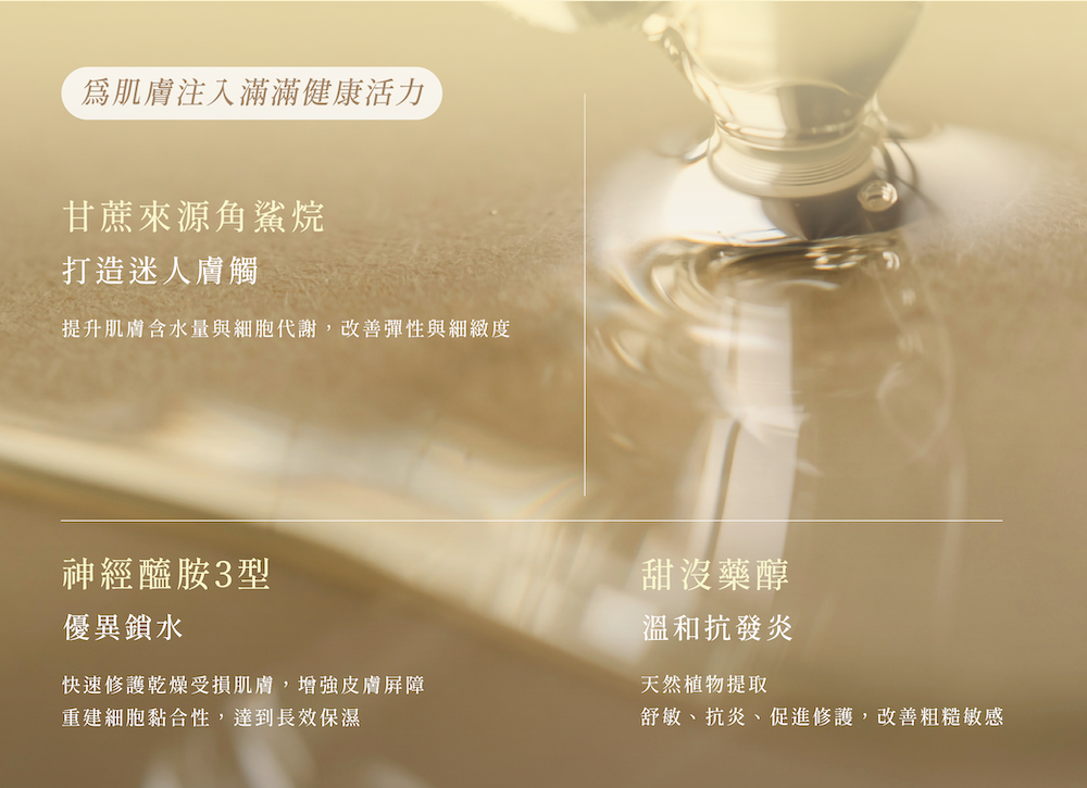 搭配甘蔗來源角鯊烷與神經醯胺 3 型