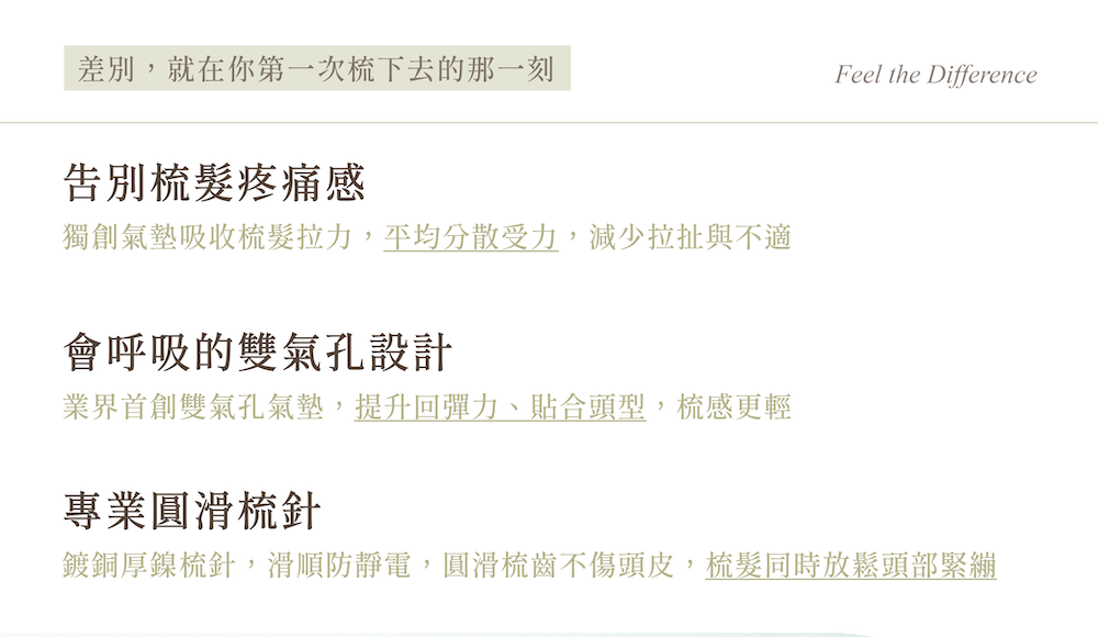 特別訂製氣墊軟度,輕輕梳就能很舒服!