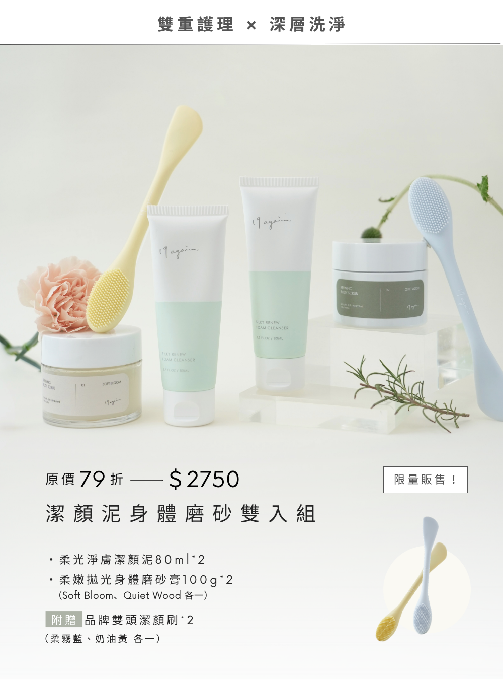 ♡ 贈 品牌雙頭潔顏刷 2件(柔霧藍/奶油黃各一)