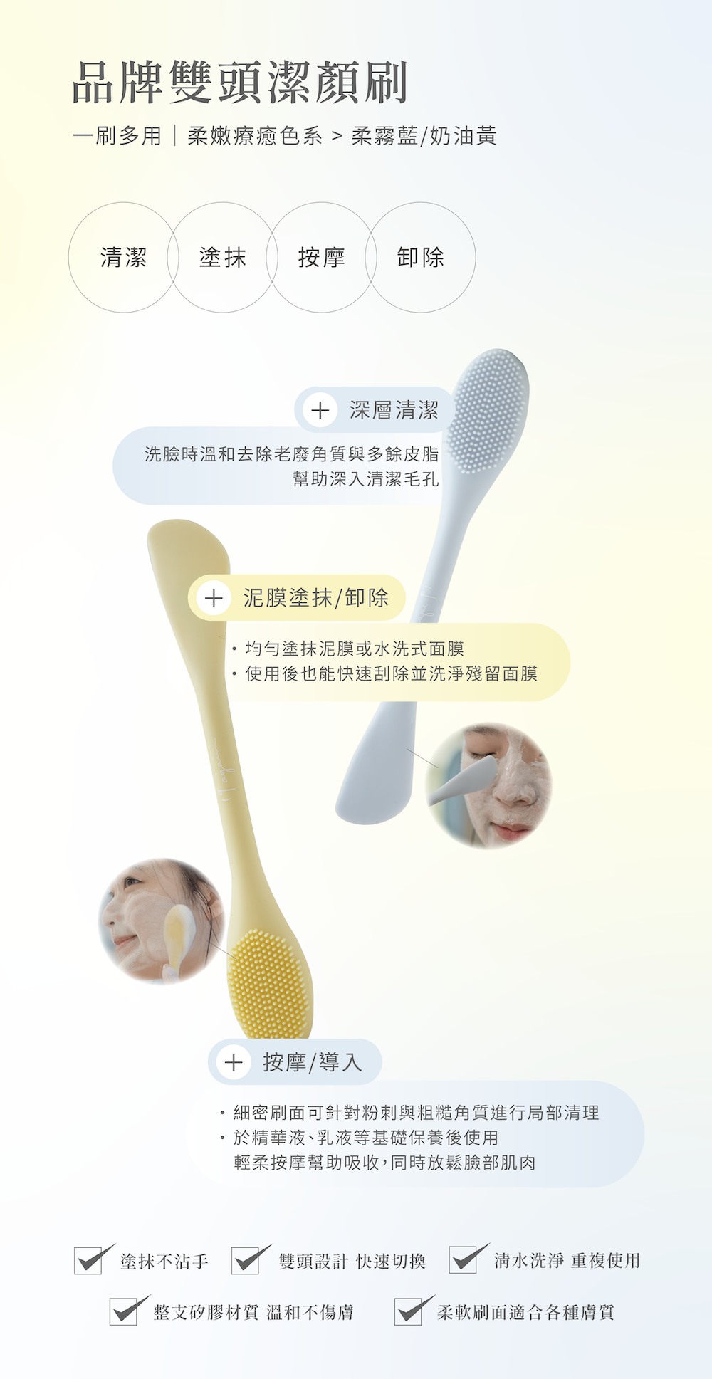 ▫️〔GIFT〕品牌雙頭潔顏刷(奶油黃)
