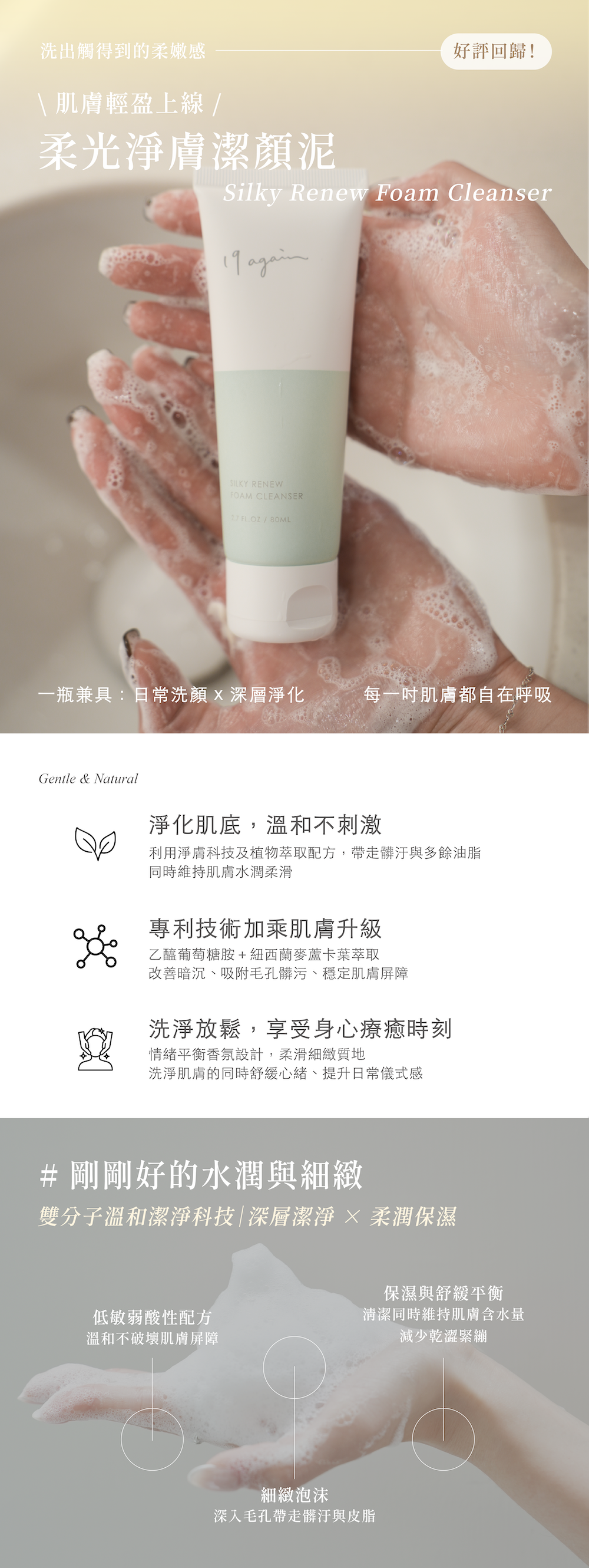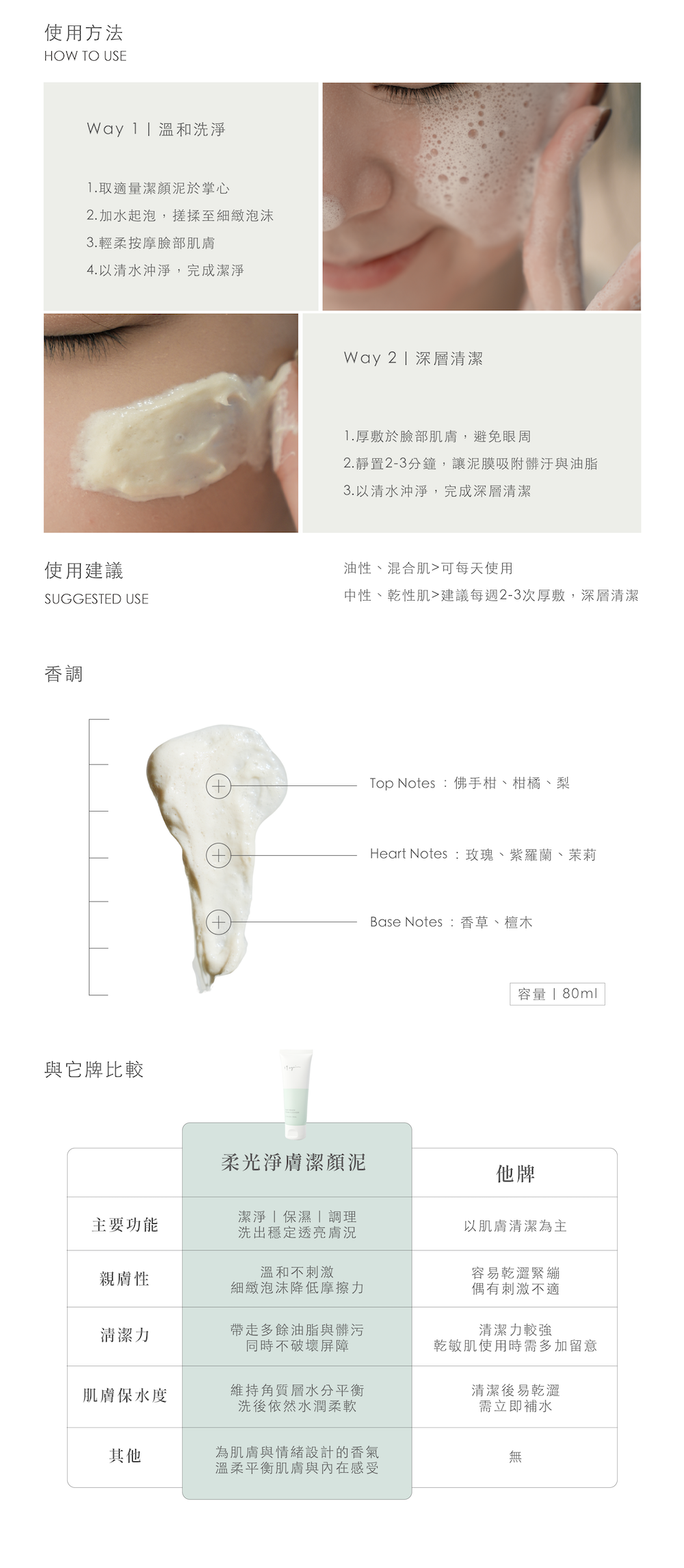 - 細緻泡沫:深入毛孔帶走髒汙與皮脂